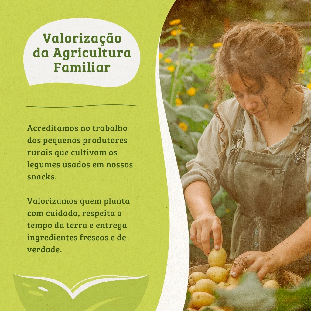 Produzidas com rigoroso processo de seleção, nossas fatias de batata doce são escolhidas manualmente junto a produtores da agricultura familiar, garantindo um alimento fresco, verdadeiro e com responsabilidade social.